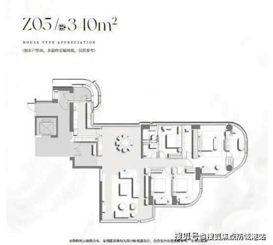 400㎡户型为六室两厅五卫设想,建立起“表里双园”的生态栖身。将三江汇流取珠江入海景不雅尽收眼底,